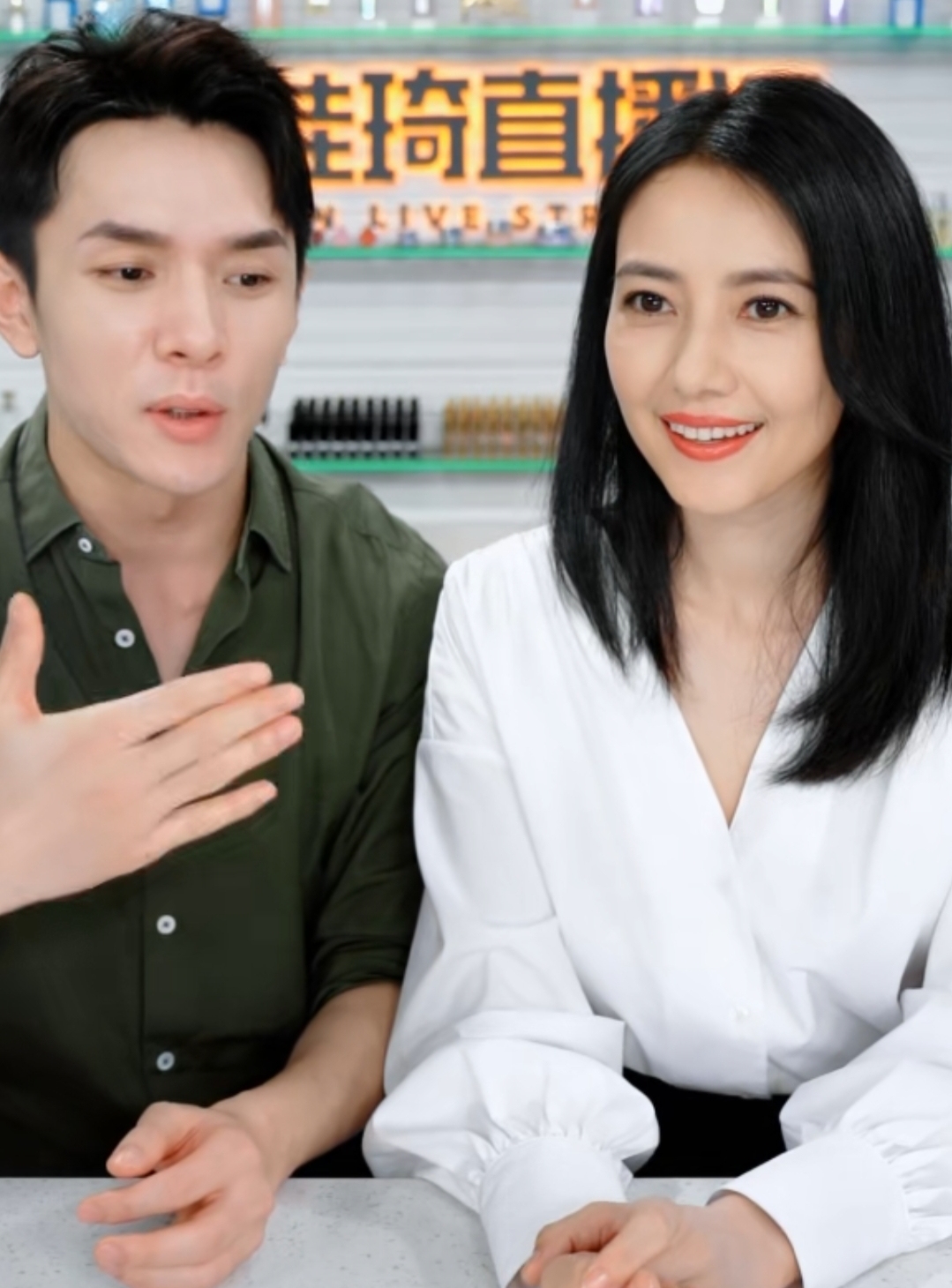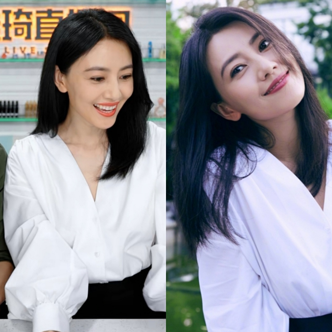 在直播中,高圆圆身穿白衣黑裙,头发披肩,气质在线,状态依旧能打。